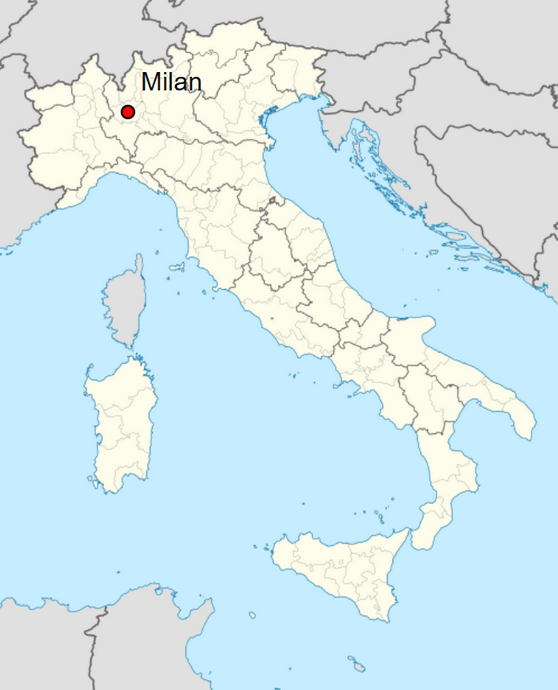 Carte de la localisation Milan en Italie.