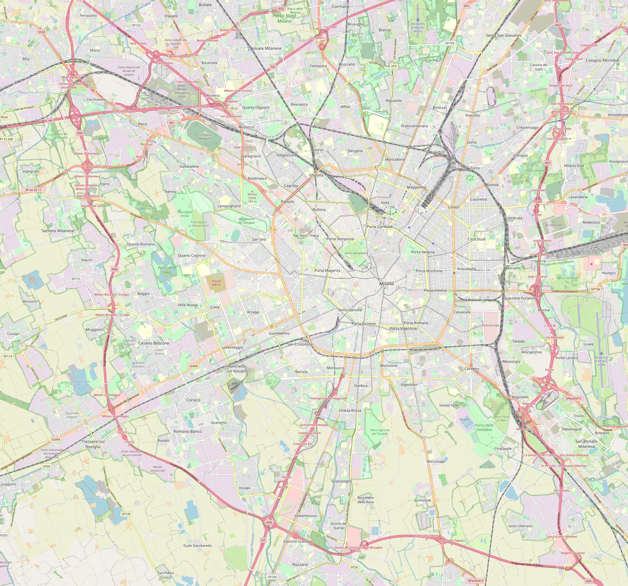 Carte de Milan avec les routes et les autoroutes.