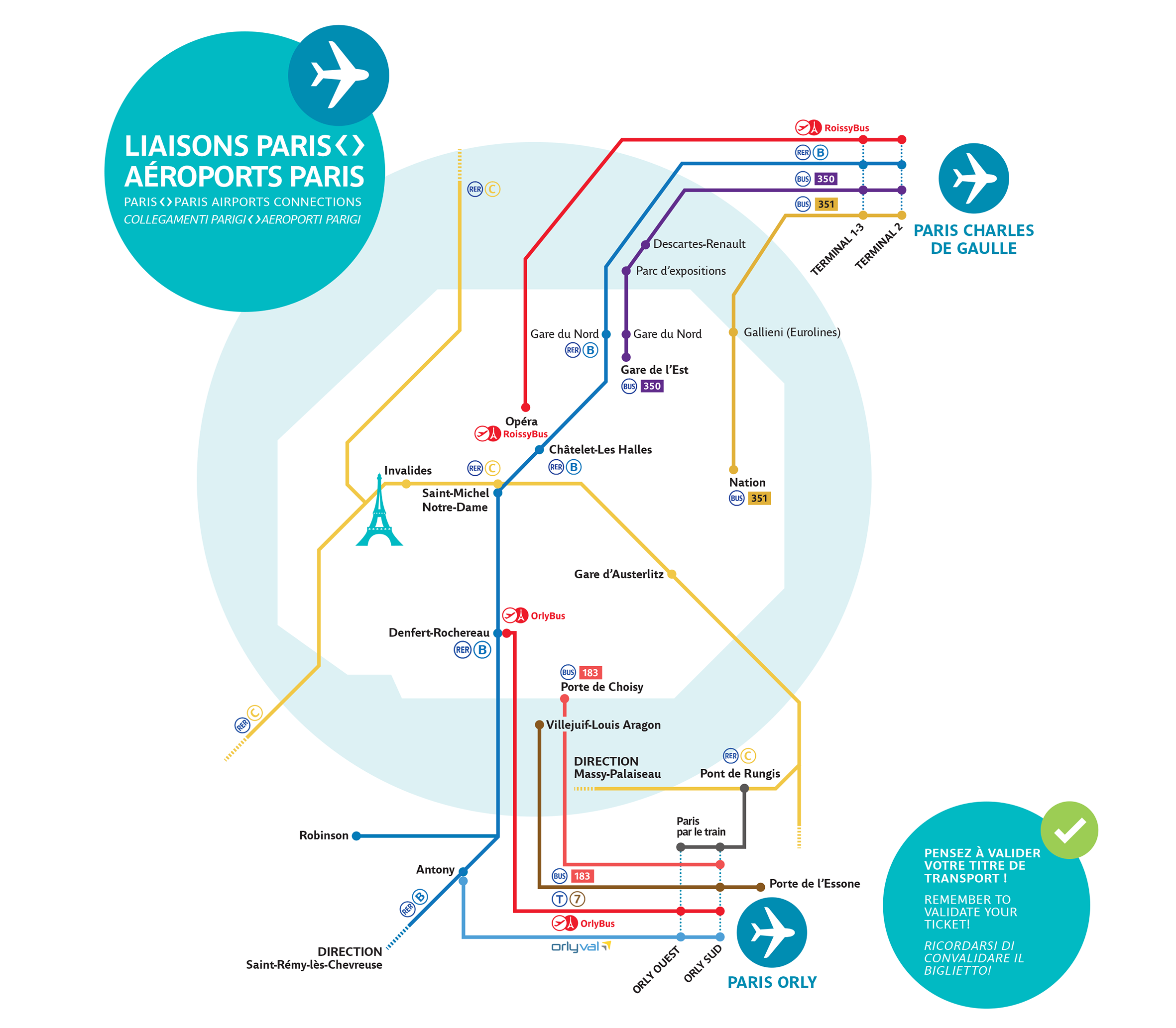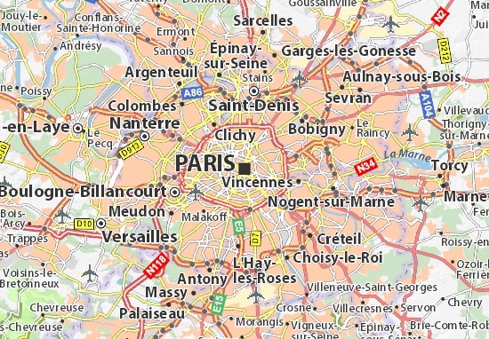 Carte de Paris avec les accès aux aéroports Paris Charles de Gaulle et Paris Orly.