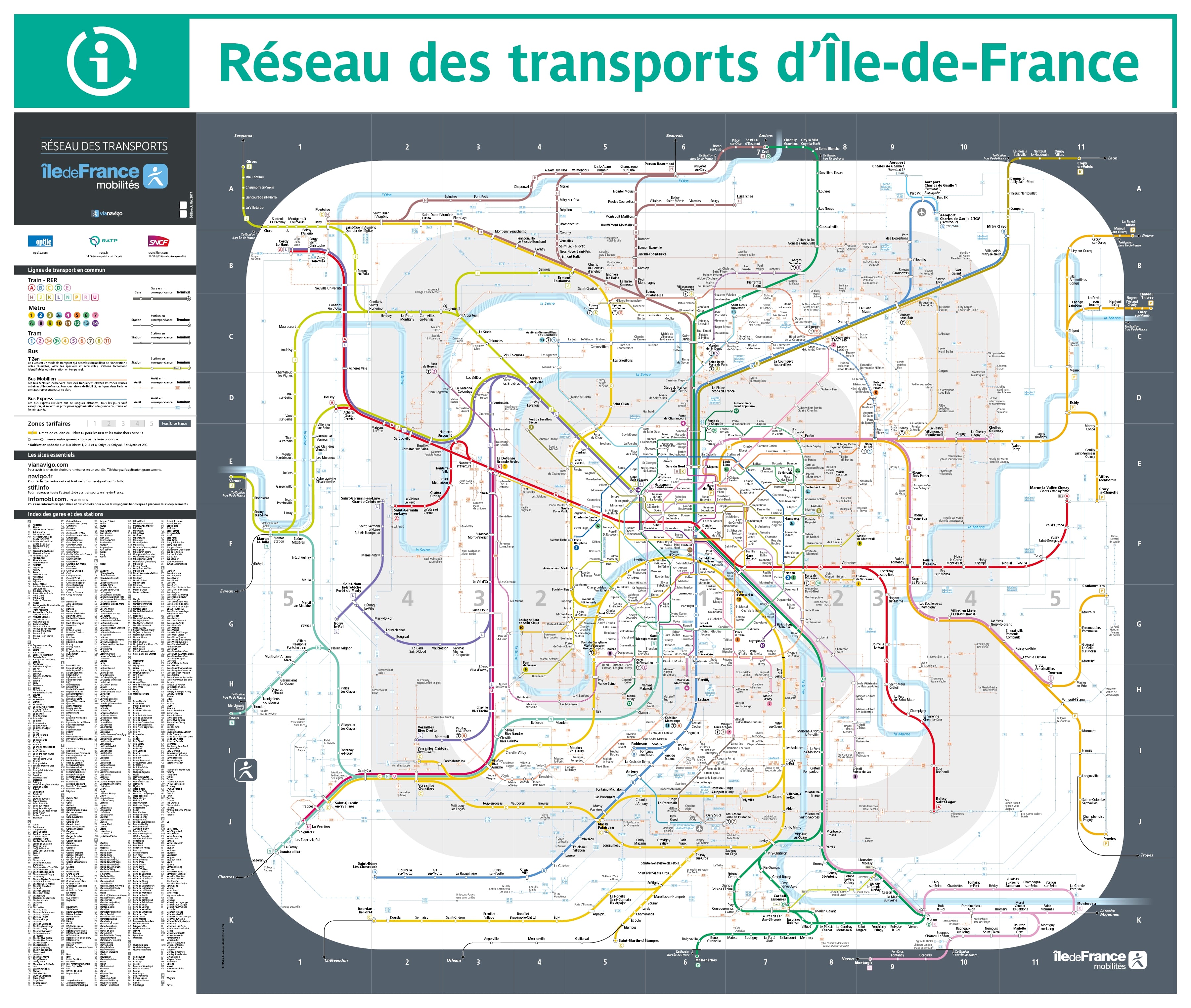 Carte de Paris avec le Réseau Express Régional RER.Zoomer sur la carte |