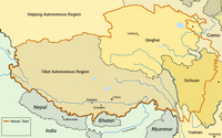 Carte du Tibet avec la région autonome actuelle et l'ancienne frontière historique.